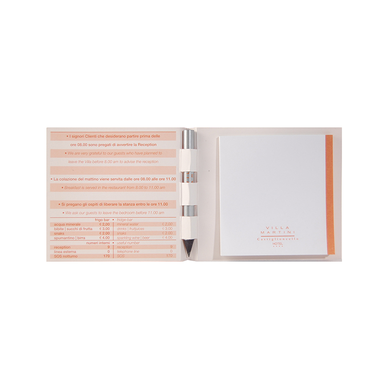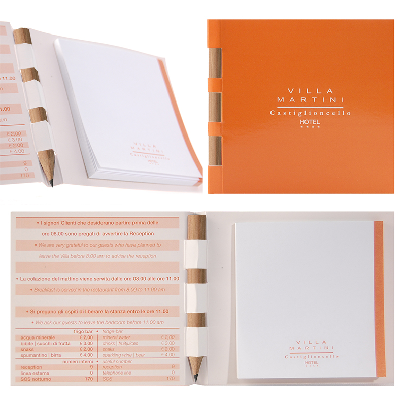 Blocchetto appunti con copertina personalizzata, cordonata e fustellata per inserimento Lapis.