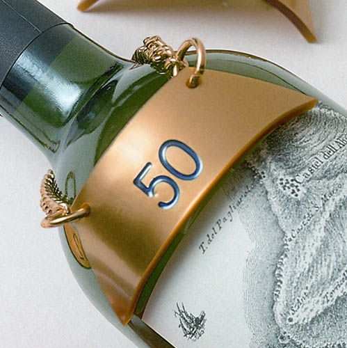 Collarini per bottiglia in plex colorato con catenina per numerazione tavolo.