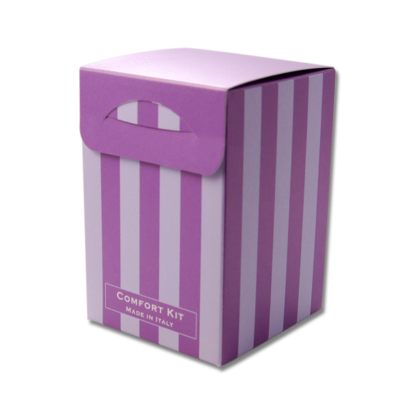 Elegante Box in cartoncino colore Provenzale, atto a contenere vari Amenities.