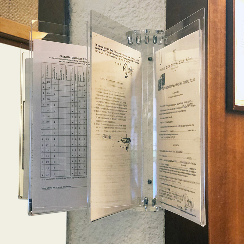 In plex trasparente con 4 ante per 8 facciate.