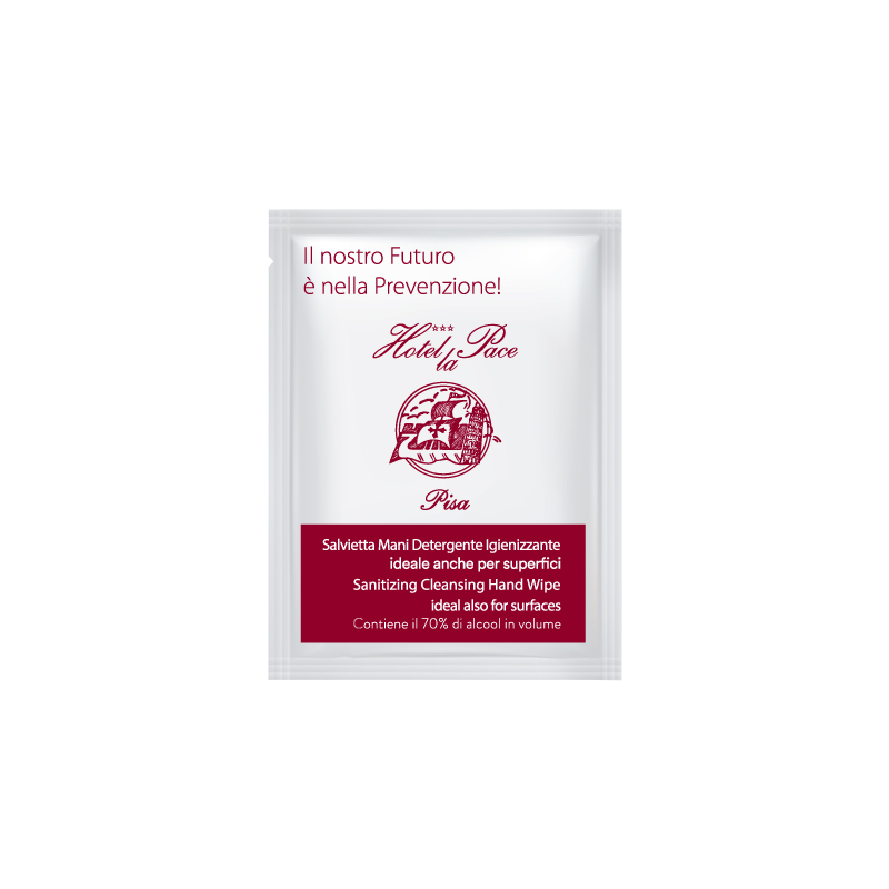 Salvietta Detergente Igienizzante Base Idro Alcolica “per le Mani e Superfici Dure” in Bustina Personalizzata