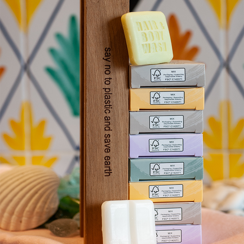 Usa solo ciò che ti serve. Prodotti cosmetici innovativi in versione solida che prendono vita tra le mani al semplice contatto con l’acqua e liberano tutta la loro vitalità e cremosità. Si sciacqua facilmente senza utilizzare plastica e senza inquinare l’ambiente. Confezioni in astuccio di cartoncino riciclato certificato FSC.